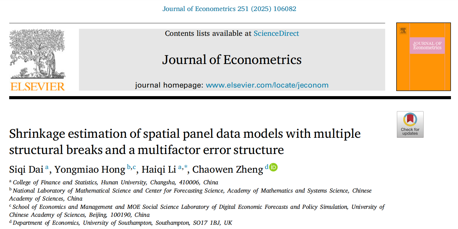 金统院李海奇教授团队研究成果在计量经济学国际顶刊发表
