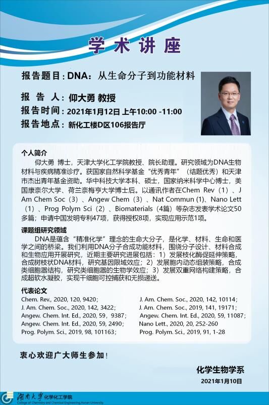 报告题目: DNA:从生命分子到功能材料