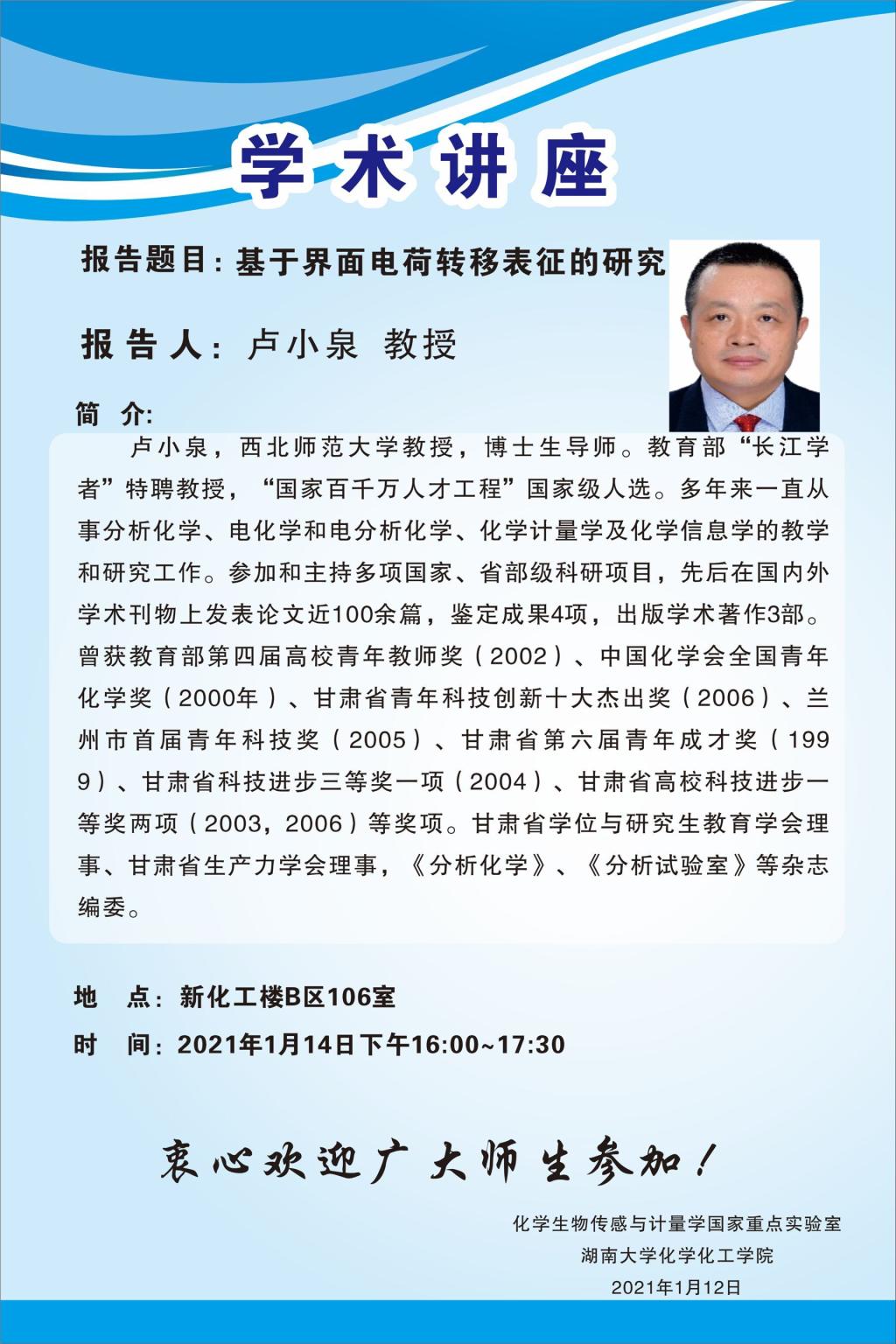 报告人: 卢小泉教授