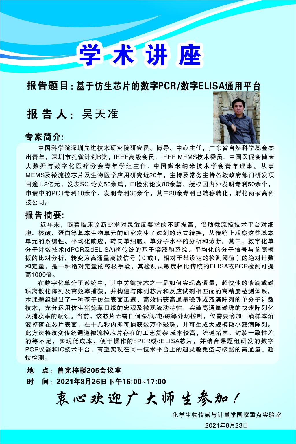 报告题目:基于仿生芯片的数字PCR/数字ELISA通用平台