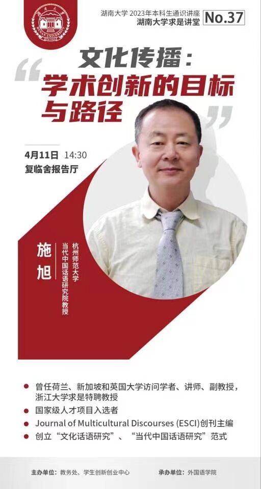 学术地点 复临舍报告厅 主讲人 施旭 杭州师范大学当代中国话语研究院教授