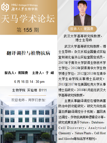 讲座时间 2023年6月16日14:30 pm