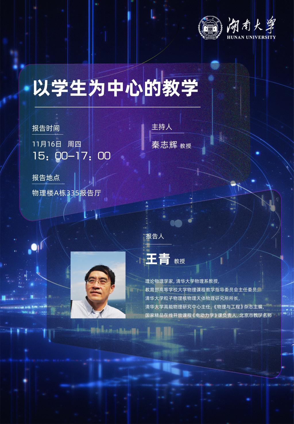 学术地点 物理楼A栋335报告厅 主讲人 王青