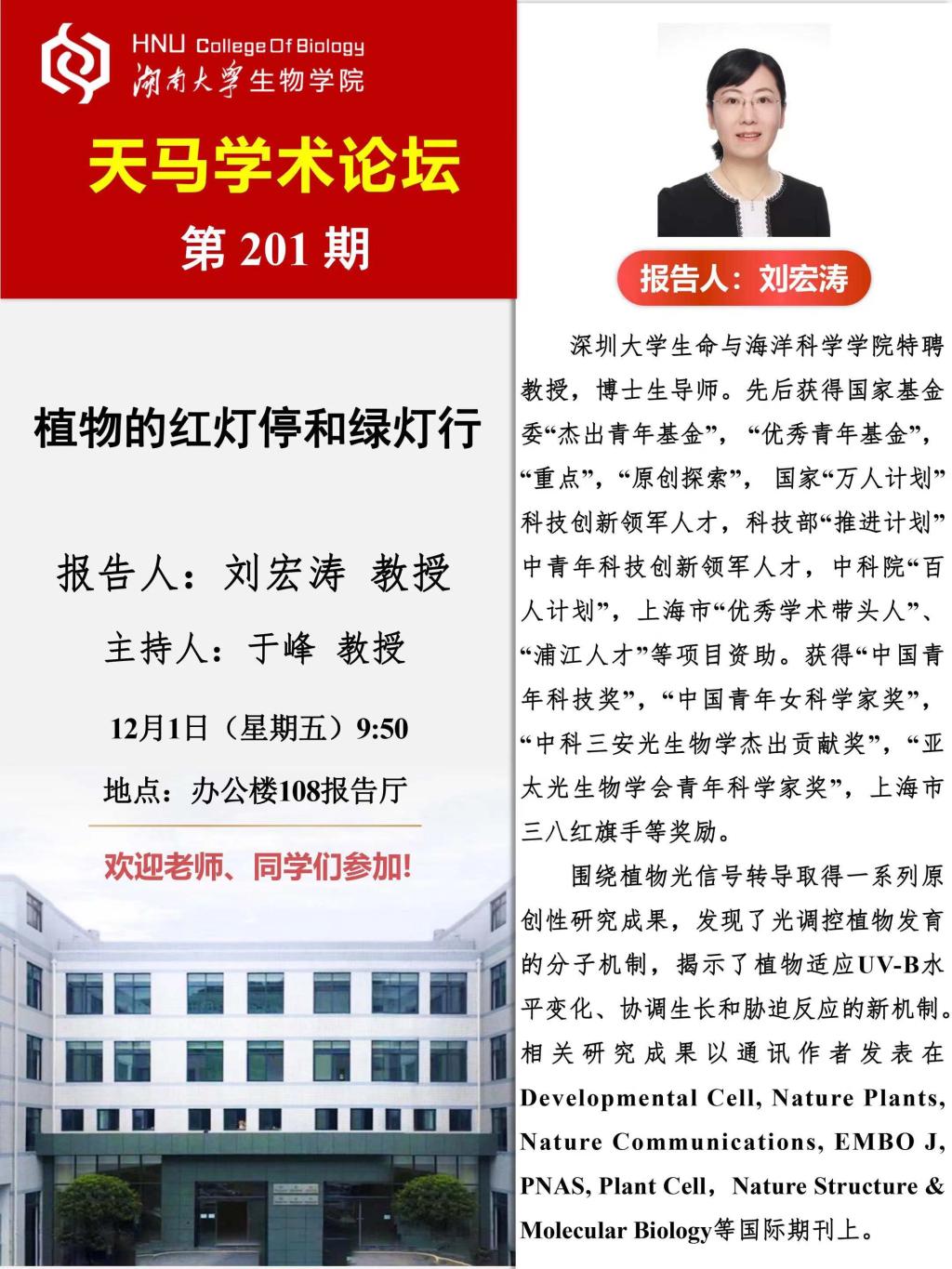 学术地点 生物学院办公楼108 主讲人 刘宏涛