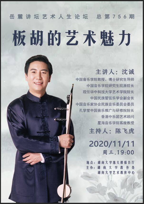 主讲人:沈诚(中国音乐学院教授、博士研究生导师,中国音乐学院研究生院院长,现任华中科技大学艺术学院院长,中国民族管弦乐学会副会长,中国音乐家协会民族音乐委员会委员,孔学堂中国音乐推广与研修院院长,香港中乐团艺术顾问,星海音乐学院客座教授)
