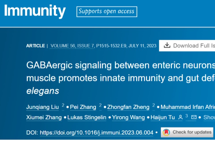 2023/07/15生物学院涂海军教授团队在肠道神经元调控肠道固有免疫研究方面取得进展神经系统对肠道内稳态和功能至关重要,但关于其对肠道固有免疫的影响及其调控机制还不完全清楚。正常的肠道功能依赖于肠神经系统和肠道内固有淋巴样细胞的高度协调反应,肠神经元可以与肠组织中的其他细胞建立功... -