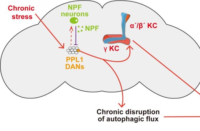 2023/12/15生物学院在抑郁相关认知障碍的神经和分子机制方面取得重要进展12月11日,生物学院覃宏涛团队联合王奕蓉团队报道了细胞自噬的异常与慢性应激诱导学习障碍(Chronic stress-induced learning deficit,CSLD)有关,并证明果蝇神经肽Y样系统通过维持正常自噬流来保护学习能力免... -