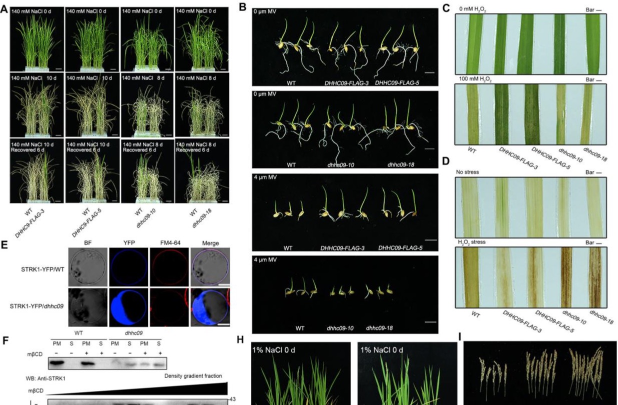 2024/01/11生物学院刘选明/林建中团队在水稻耐盐碱机制研究中取得新进展近日,欧冠足球官方中文网站生物学院刘选明/林建中团队从水稻OsDHHC cDNA文库中筛选到一个DHHC型锌指蛋白DHHC09,通过S-酰化激酶STRK1调控后者介导的级联磷酸化的盐胁迫信号转导,调节过氧化氢(H2O2)稳态,能增强水稻耐盐性... -