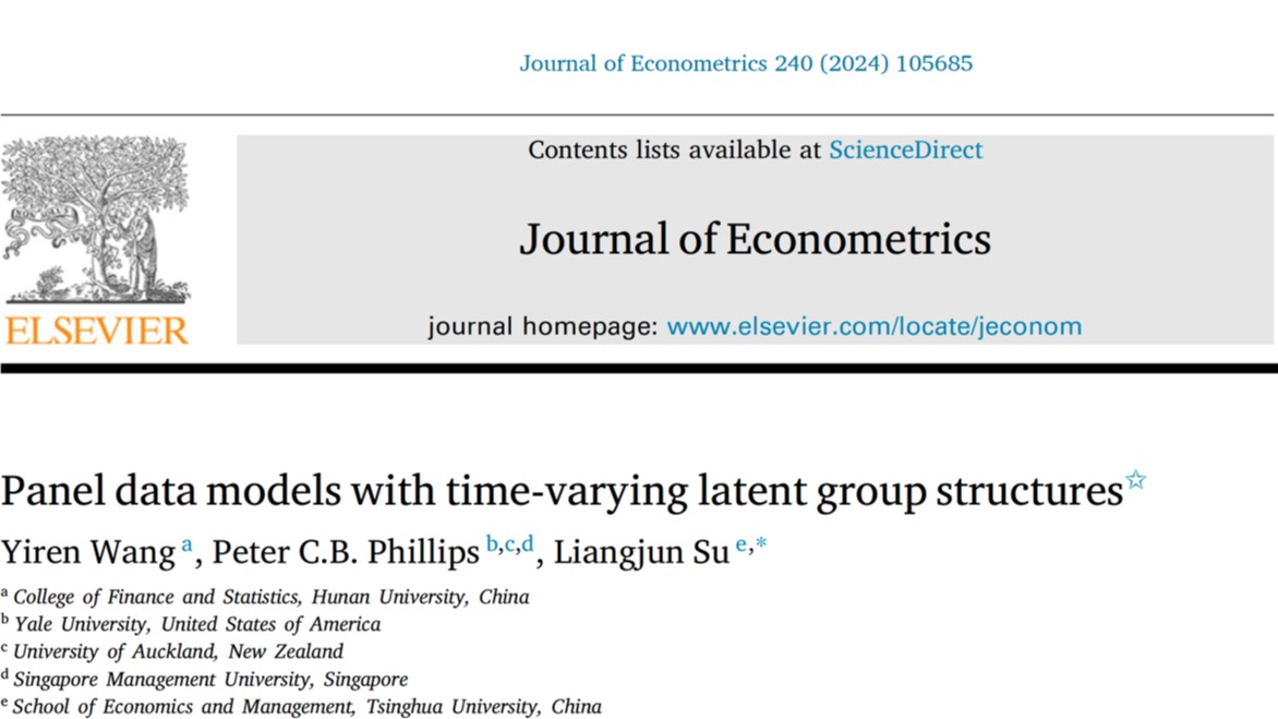 2024/02/04金统院王奕人研究成果在计量经济学顶刊发表近日,金融与统计学院王奕人助理教授在计量经济学领域取得研究进展,研究成果发表在Journal of Econometrics期刊上。该研究为带有时变群组结构的面板数据模型提供了有效的估计算法,同时为时变结构与群组结构估计... -